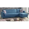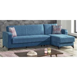 Ο καναπες είναι ένας 3-θέσιος γωνιακός καναπές επενδυμένος με βελούδινο ύφασμα σε ΜΠΛΕ χρώμα και πολύ ψηλά μεταλλικα ποδια. Το πλεονέκτημά του είναι ότι μετατρέπεται σε κρεβάτι με μηχανισμό που «ρίχνει» την πλάτη, ενώ η πλευρά που δημιουργεί την γωνία μπορεί να τοποθετηθεί είτε αριστερά, είτε δεξιά ανάλογα με την διαρρύθμιση του χώρου σας. Ο καναπές διαθέτει και 2 μικρά μαξιλαράκια σε ίδιο χρώμα και ύφασμα.